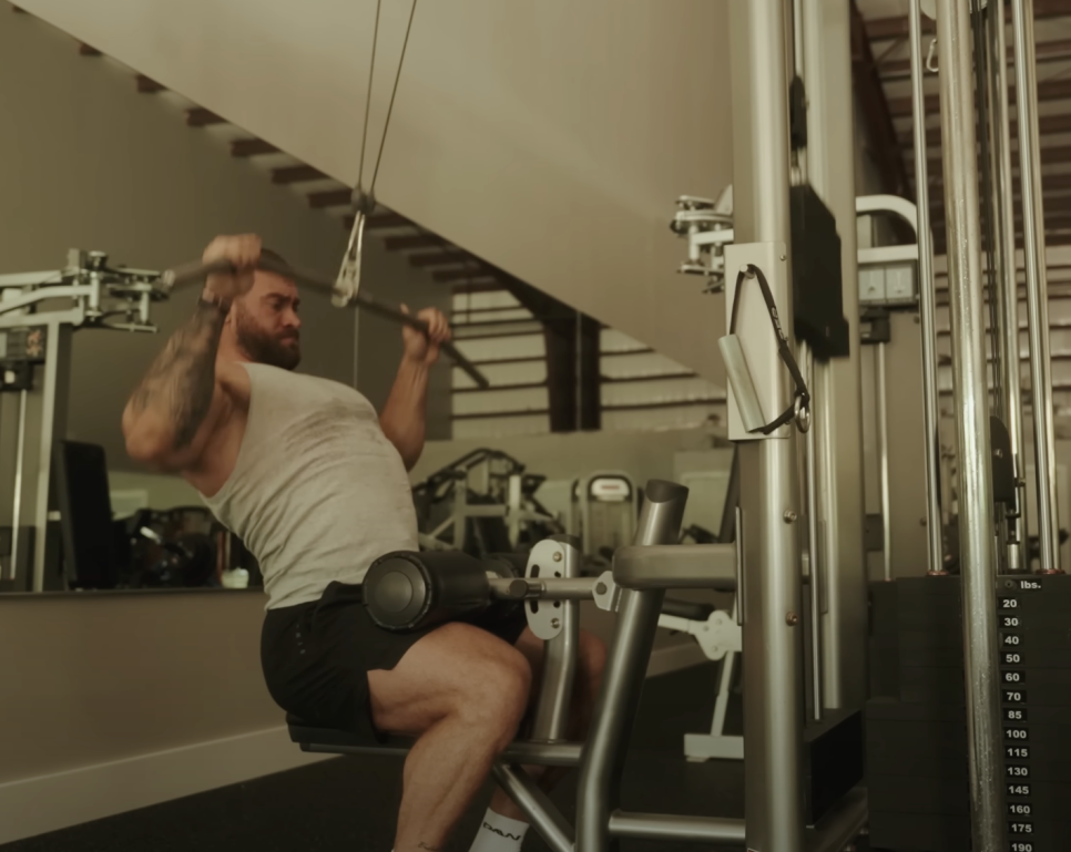 A : 와이드그립 풀업, 뉴트럴그립 풀업, 플레이트 바벨로우, 웜암 덤벨로우, 시티드 페이스풀, 라잉 페이스풀, 케이블 암풀다운, 덤벨풀오버