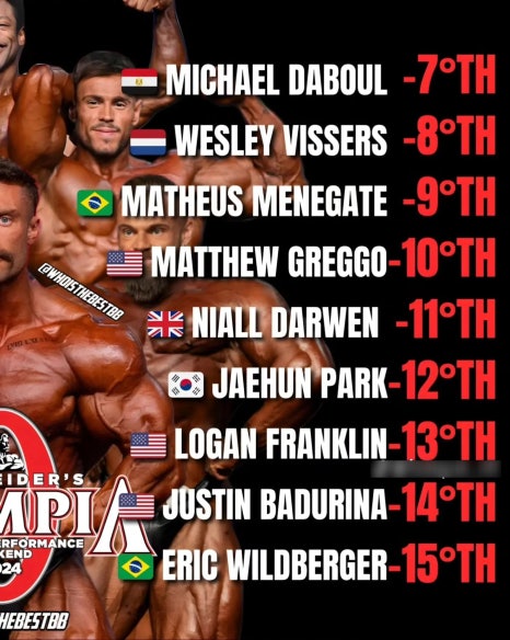 24년 미스터올림피아 클래식피지크 탑15 순위